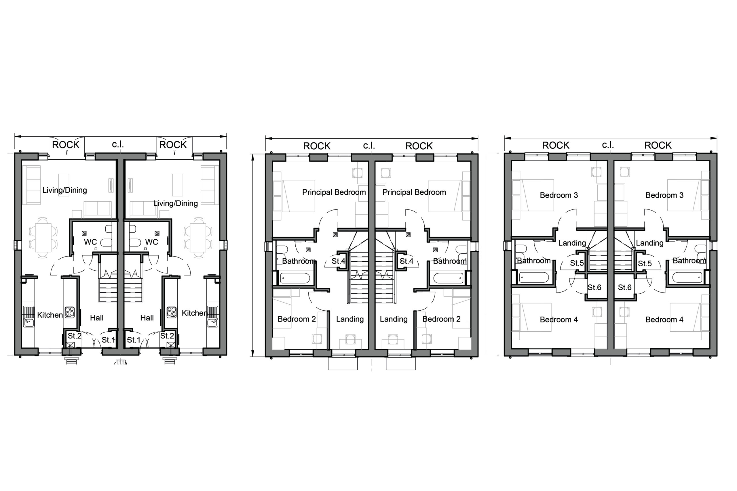 The Rockingham is a luxurious 4-bedroom family home, spread over 3 floors. The ground floor provides a modern open plan kitchen/dining area and lounge (some plots have the ‘closed kitchen floor plan’ – see individual plots for details). French doors lead out to the rear garden. A useful downstairs W/C and additional storage finish the ground floor. The first floor boasts 1 double and 1 single bedroom and a contemporary family bathroom and further additional storage space. On the top floor of the house there are a further 2 double bedrooms and another generous family bathroom.